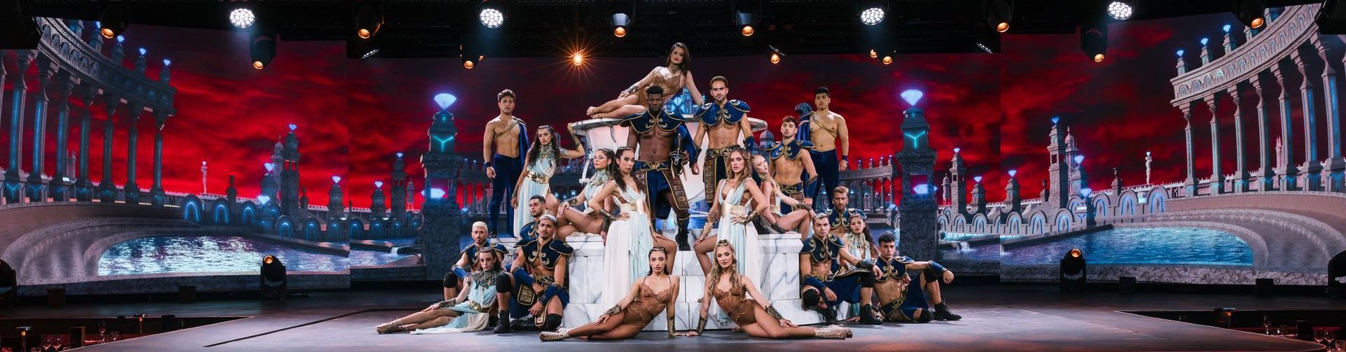 Una PERFORMANCE ARTÍSTICA –acrobacias, música, danza, pantallas LED y efectos visuales – inspirada en el antiguo RELATO MITOLÓGICO del Filósofo Platón, que vincula el origen de Las Islas Canarias al antiguo continente perdido de LA ATLÁNTIDA.
